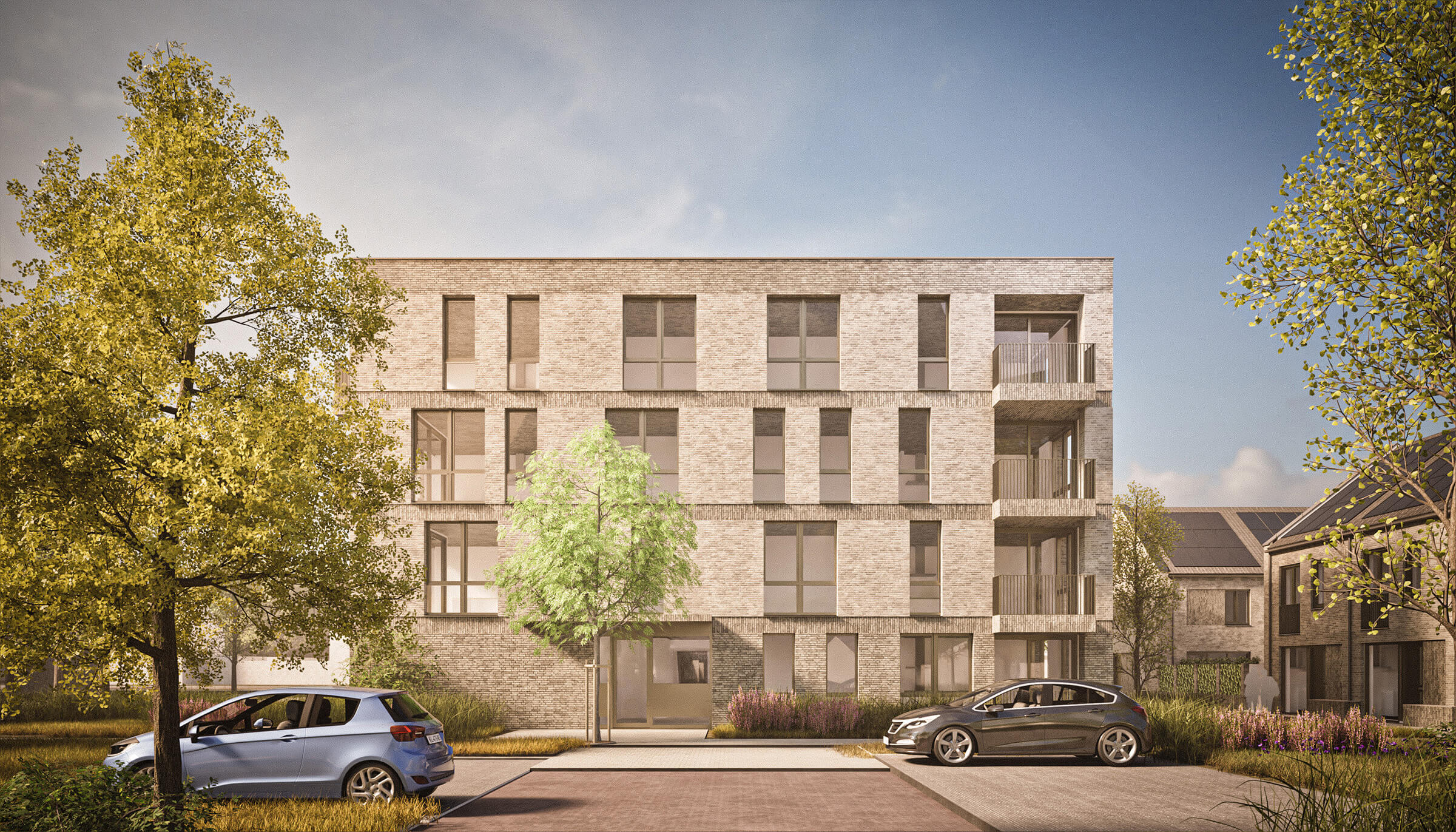 In deze visualisatie opgave is extra aandacht besteed om de connectie tussen de groene locatie en de architectuur van de woningen en appartementen over te brengen. De grondgebonden woningen bestaan uit 4 types die op een eigen manier aansluiten op de openbare ruimte. De aandacht gaat hierbij uit naar een element in de voorgevel met een bankje & plantenbak die de interactie met het buitengebied stimuleren